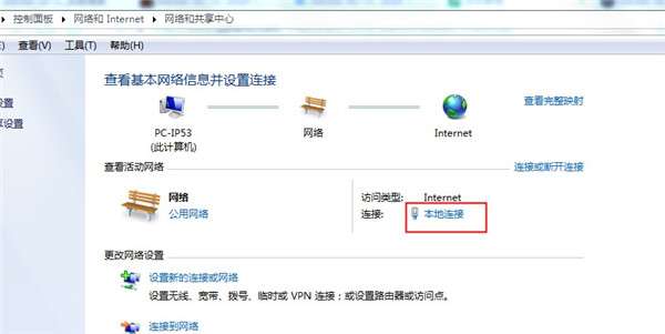 4、进入网络,点击本地连接;
