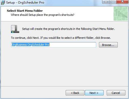 4、选择开始菜单文件夹,选择默认的OrgBusiness OrgScheduler Pro。