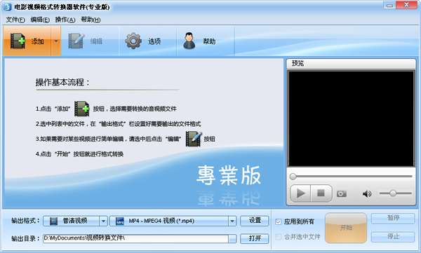 魔法视频格式转换器专业版是一款十分不错的格式转换工具。魔法视频格式转换器专业版界面简洁,功能强大,通过魔法视频格式转换器官方版能够轻松快捷的将RMVB、AVI、MPG、MP4、MKV、FLV、DVD、XV格式、以及索尼/松下等DV拍摄的MTS格式等转换为PSP、ipad、iPhone、MP4播放器等移动设备支持播放的格式。