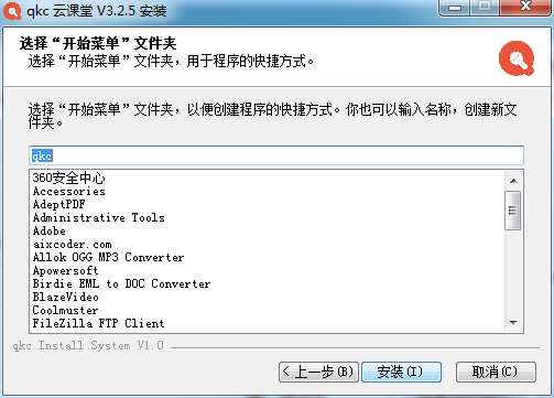 4、选择开始菜单文件夹,点击安装