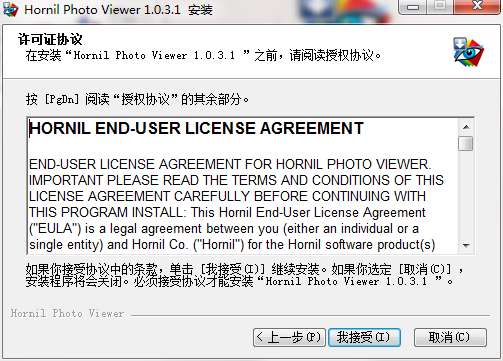 1、在PC下载网下载Hornil Photo Viewer官方版这款软件,解压后,双击EXE文件,选择安装语音简体中文,点击OK