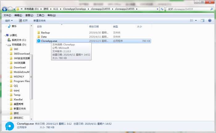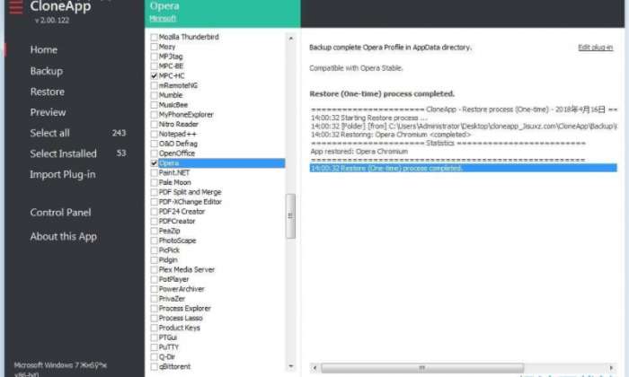 CloneApp是一个应用数据备份克隆工具,为了备份各种程序的配置文件,以及存储在注册表的应用程序设置。可以备份很多程序,包括qq等各种程序,以及各种 Windows 选项帐户图片、 收藏夹、 保存的游戏等。CloneApp 目前支持几个十几个流行的软件产品 (商业和自由) 和支持其他应用程序将添加在将来的版本。