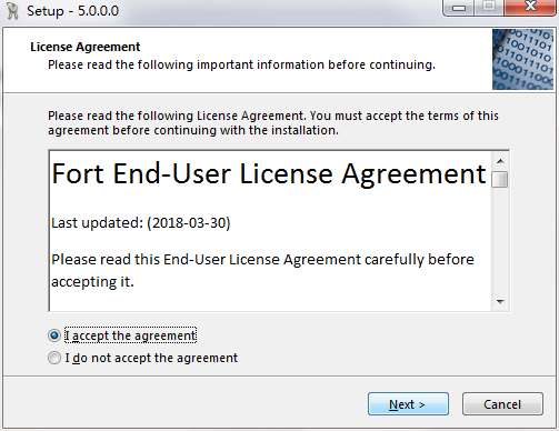 3.双击打开,进入Fort Home Edition软件安装界面,阅读安装许可协议,点击我同意,点击下一步