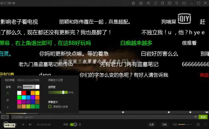 第三步:您也可以发表弹幕哦,还可以设置弹幕文字颜色和大小哦(如下图)。