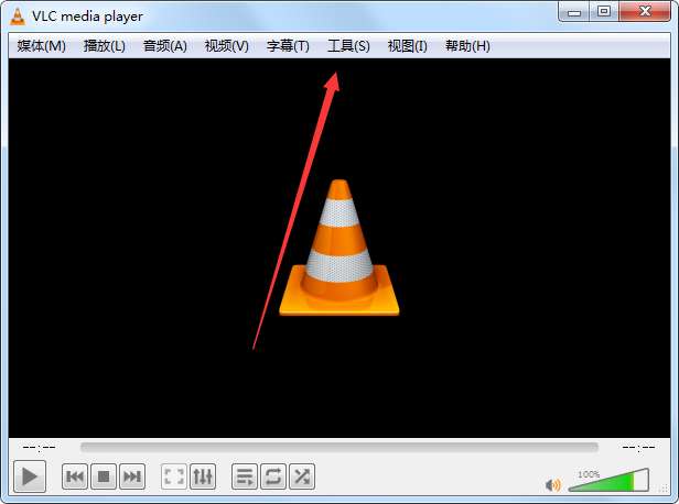 打开“VLC media player”软件,进入首页后,点击工具。