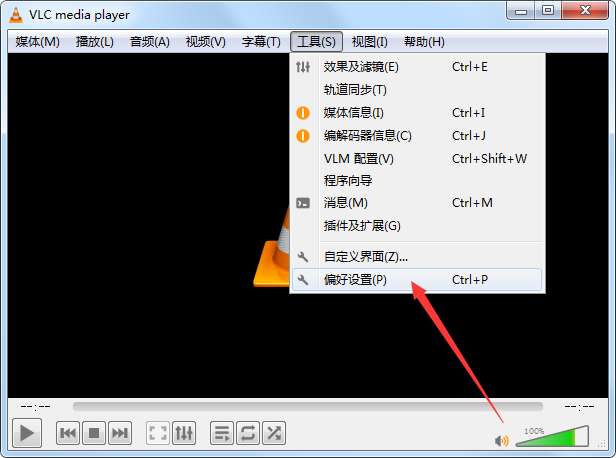 打开VLC Media Player官方版,点击工具,点击偏好设置,点击界面,选择菜单语言。