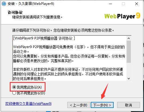 1.在PC下载网下载久久影音软件包,解压缩后双击“WP9Setup.P2P.exe”程序开始安装,查看软件许可协议,选择“我同意此协议”,点击“下一步”