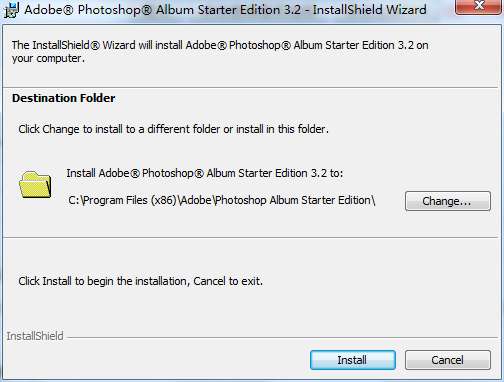 1、在PC下载网下载Adobe Photoshop Album官方版的压缩包,解压后,双击exe文件,进入安装界面,设置软件安装位置,点击browse可以自由设置,建议大家选择安装在D盘,然后点击install