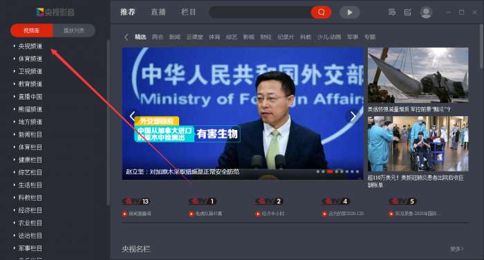 1、打开软件,点击央视频道