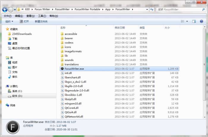 2.解压Focus Writer软件,运行“EXE.文件”