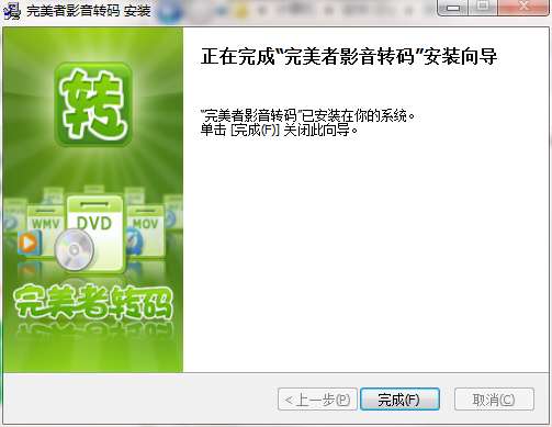 5.点击完成,完美者转码软件安装成功
