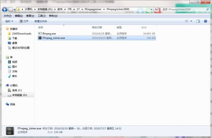 2.解压FFmpegJoiner软件,运行“EXE.文件”