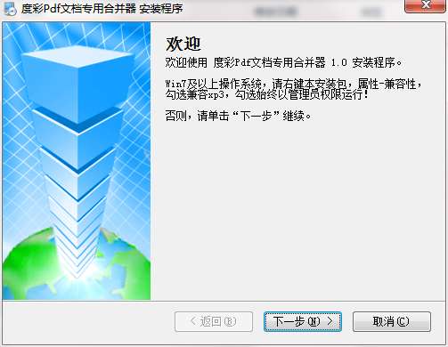 3.双击打开,进入亿彩Pdf文档专用合并器软件界面,点击下一步