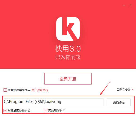 在本站下载最新版的快用苹果助手安装包,安装完毕点击打开。