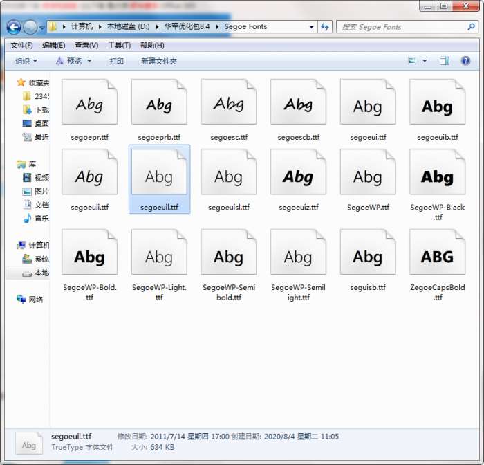 1、在华军软件园将Segeo字体打包具下载下来,并解压到当前文件夹中,这时我们会得到Segoe Fonts文件夹。