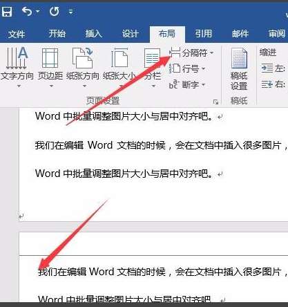 4、如果您想将某一页设置为第一页,那你定位到该页,然后点击菜单栏中的布局选项,点击工具栏的【分页符】选项。