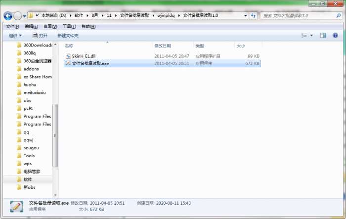 2.解压文件名批量读取软件,运行“EXE.文件”