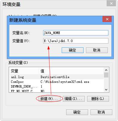 变量值:(变量值填写你的jdk的安装目录,例如本人是 E:Javajdk1.7.0)