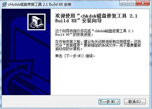 chkdsk磁盘修复工具中文版正在安装,耐心等待一下