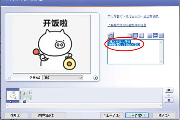 4、给图片添加你想要的备注,即解说词,同样点击下一步,