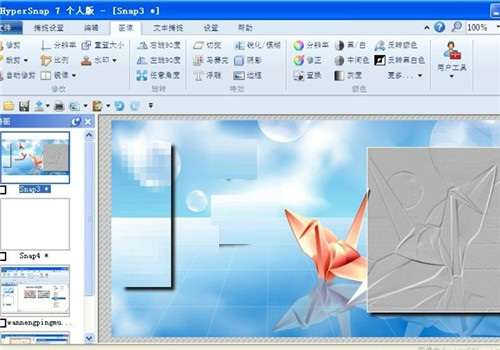 特效:HyperSnap可以做切变,锐化、模糊效果,打马赛克,可以加阴影,加边框,可以做出浮雕效果;