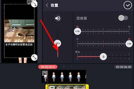 3、在声音处理界面,我们把音量拉至最底即可进行原声的消除了。