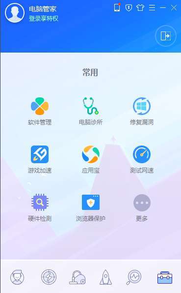 1、首先我们需要在电脑上下载安装好腾讯电脑管家软件,然后打开登陆后进入软件主界面,如下图所示,这是软件的小界面,我们可以看到已经登录好了,这时候我们如果要切换账号可以查看下面的详细方法。