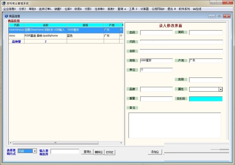 宏钧进销存软件,不但可以为您化繁为简,还能按要求量身定做,不懂电脑也能轻松上手,专业理论不再高不可攀,初中文化也不必望而却步,盘点库存如数家珍,商品来源、去向条理清晰,“跑、冒、低、漏”无处藏身,成本利润一目了然.试用软件:访问代码:11 密码:111。