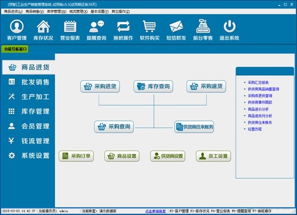 领智工业生产销售管理系统最新版是一款界面清晰、使用流畅、专业出众的销售管理软件,领智工业生产销售管理系统最新版为广大用户提供了商品进货,批发销售,生产加工,库存管理,会员管理,钱流管理等功能模块,通过领智工业生产销售管理系统官方版可以进行客户还款提醒、客户销售提醒等。