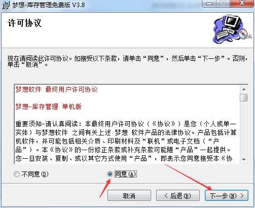 1、在PC下载网下载梦想库存管理软件最新版压缩包,然后进行解压,解压后,双击exe程序,进入安装界面,然后点击下一步