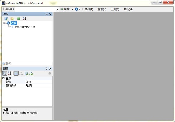 3.配置方便。mRemote采用xml来保存用户的配置信息。这样用户可以方便的存储多个远程桌面文件,且分发导入都很方便。值得一提的是,mRemote在xml中把用户密码进行了加密,防止明文密码出现在文本配置文件中。