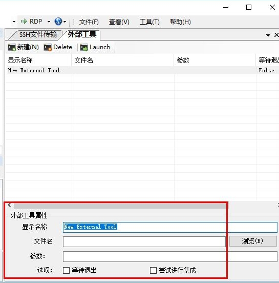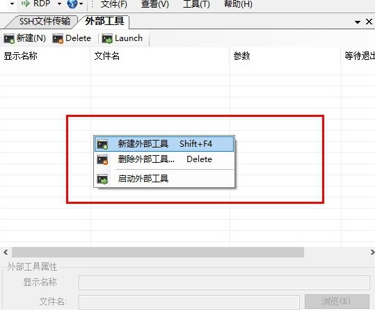 下面的列表中的字段是灰色的,因为你没有外部工具项创建呢。要创建一个,右键单击列表中的空白区域,然后选择添加,如下面的截图。