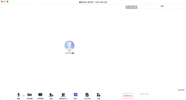 点击该按钮,即可唤出聊天窗口,当您不方便语音或被主持人静音时,您可以在该窗口和会议内其他成员进行沟通交流,目前暂不支持私人聊天功能