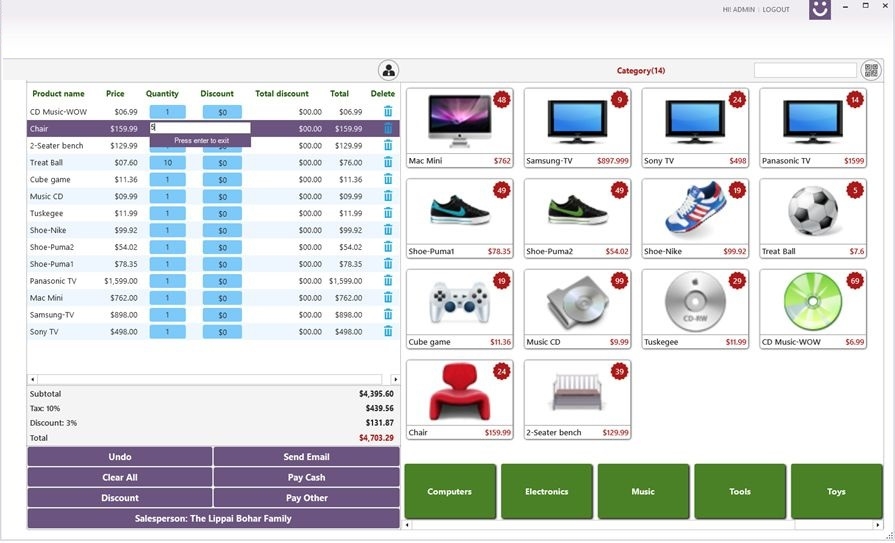 现金登记:计算交易总额的就像一个普通的现金登记机。