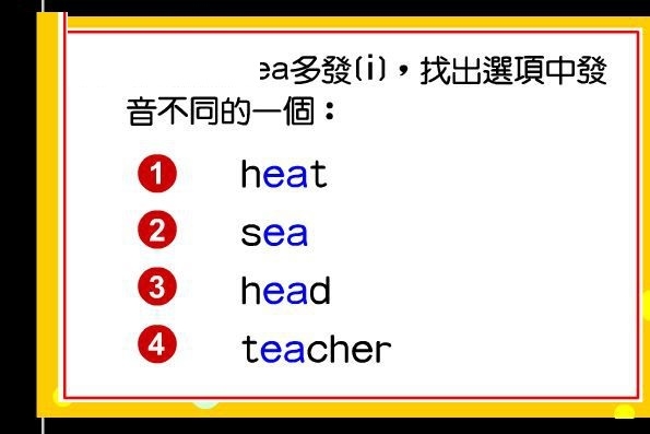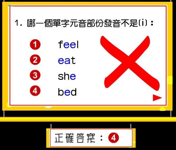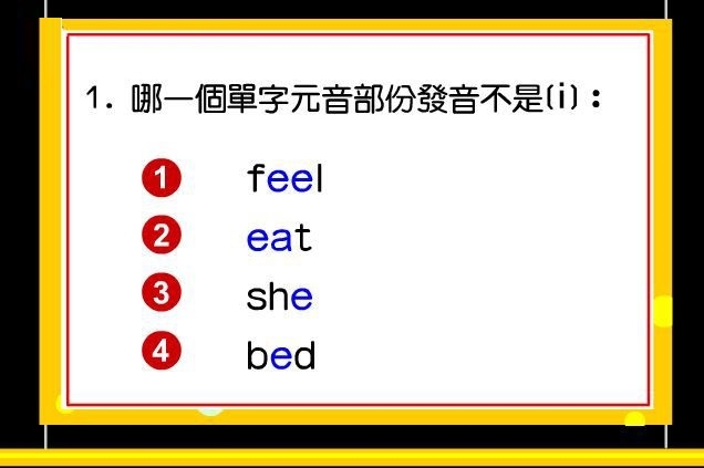 15、训练功能:哪一個單字元音部份發音不是(i:)