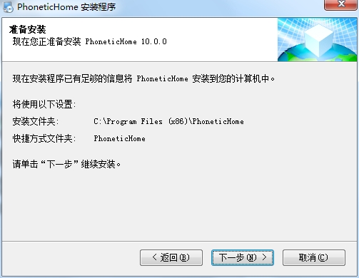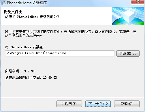 4、提示软件的安装地址设置C:Program Files (x86)PhoneticHome