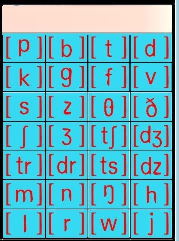 9、下图显示辅音内容,辅音也是单词发音常用的,所以你需要背诵辅音