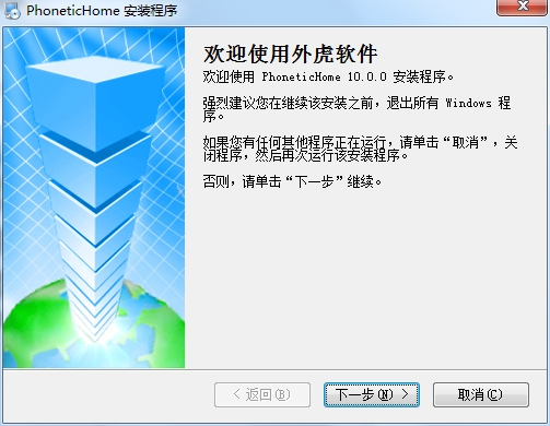 1、下载phonetichome.exe直接启动就可以了,显示软件的安装界面