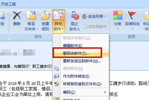 utlook撤销发出的邮件只需要在邮箱中找到需要撤销的邮件并双击打开,然后找到菜单栏中的其他动作下的撤回该邮件操作即可完成邮件的撤销操作了。具体步骤如下:
