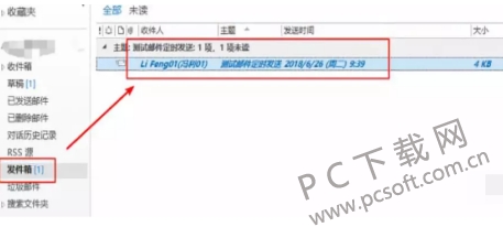 3、点击发送后,这封邮件会会进入到发件箱中,但是并没有真正的发送出去,等到你设置的时间后就会发送了。是不是很简单呢,赶紧来使用吧。