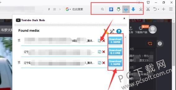 4、找到要下载的视频,播放此视频点击右上方的视频下载小图标,就会弹出如下图,选择一种下载即可。(注意不同的下载器插件针对不同的视频格式,如果当前的插件不能下载该视频可返回应用中心换一个插件安装试试看。)