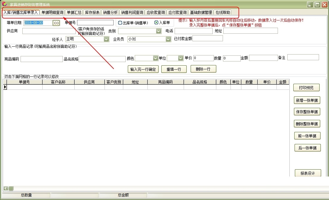 小编推荐:通用家具进销存管理系统本软件小编亲测,各种功能非常简单易操作,连小编这种刚使用的人都能快速掌握,大大的赞!本站还有类似软件甘特图、插件下载、音乐间谍、p2psercher、快递单号生成器,推荐大家下载!