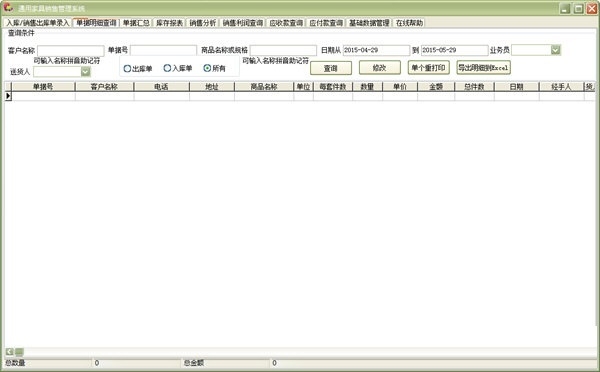 通用家具进销存管理系统最新版是一款非常适合家具销售行业使用的家具进销存软件,通用家具进销存管理系统最新版界面简洁,功能强大,能够帮大家轻松快捷的管理出库、入库单、查询单据明细、单据汇总等。有了通用家具进销存管理系统官方版就能够减少人力资源的投入了。