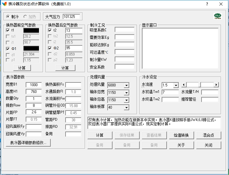 表冷器及状态点计算软件基本简介