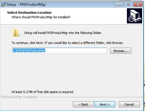 3、设置软件的安装地址C:FRSFRSProductMgr