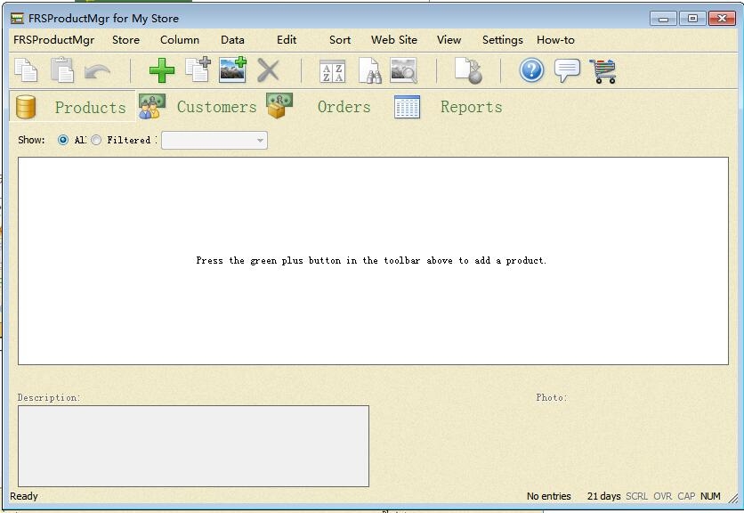 对于大多数需求,您只需要一个商店但是,FRSProductMgr 1非常灵活,并且它支持任意数量的商店。 每个Stores数据都保存在其owm数据文件中您可以通过“Store Add Store”菜单命令添加一个新的Store。您可以随时通过Store Contact Intmation菜单命令重命名Store如果您不再需要Store, 可以通过单击Store Remove Store菜单命令完全删除它