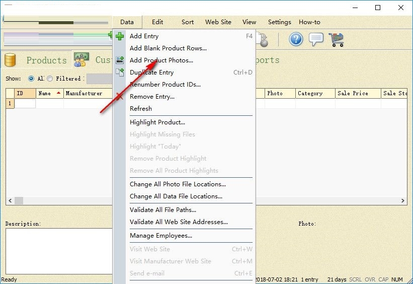 6、数据菜单,将您的产品数据从这里加载