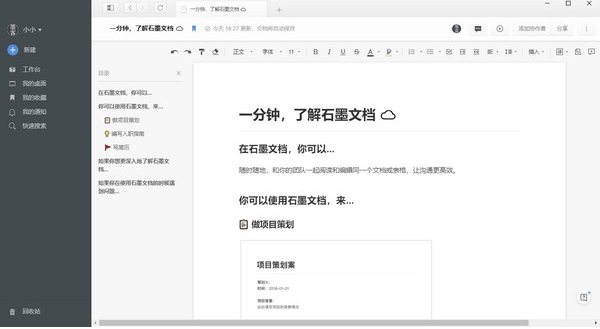石墨文档同时拥有App、网页端和微信端,你可以随时随地使用石墨文档来协作或写作。媒体编辑、作家编剧可以随时随地进行素材备份,灵感记录。