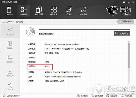 点击之后就会进行检测,注意了你们要是不知道怎么看你的硬盘分区格式的下面检测的分区形式有标明的。我这里是MRB模式,所以也就是说我这台电脑启动的方式为Legacy(其实我的是虚拟机)。好了点击下一步。