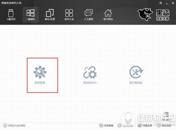首先我们打开黑鲨装机大师,在一件装机模块,然后点击“系统重装”。进入如下图:
